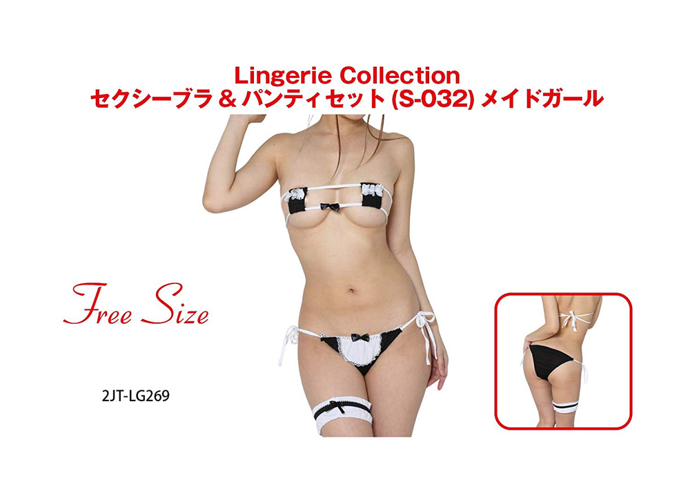 全体的にメイドガールを意識したデザインのセクシーなブラ&ショーツのセット。